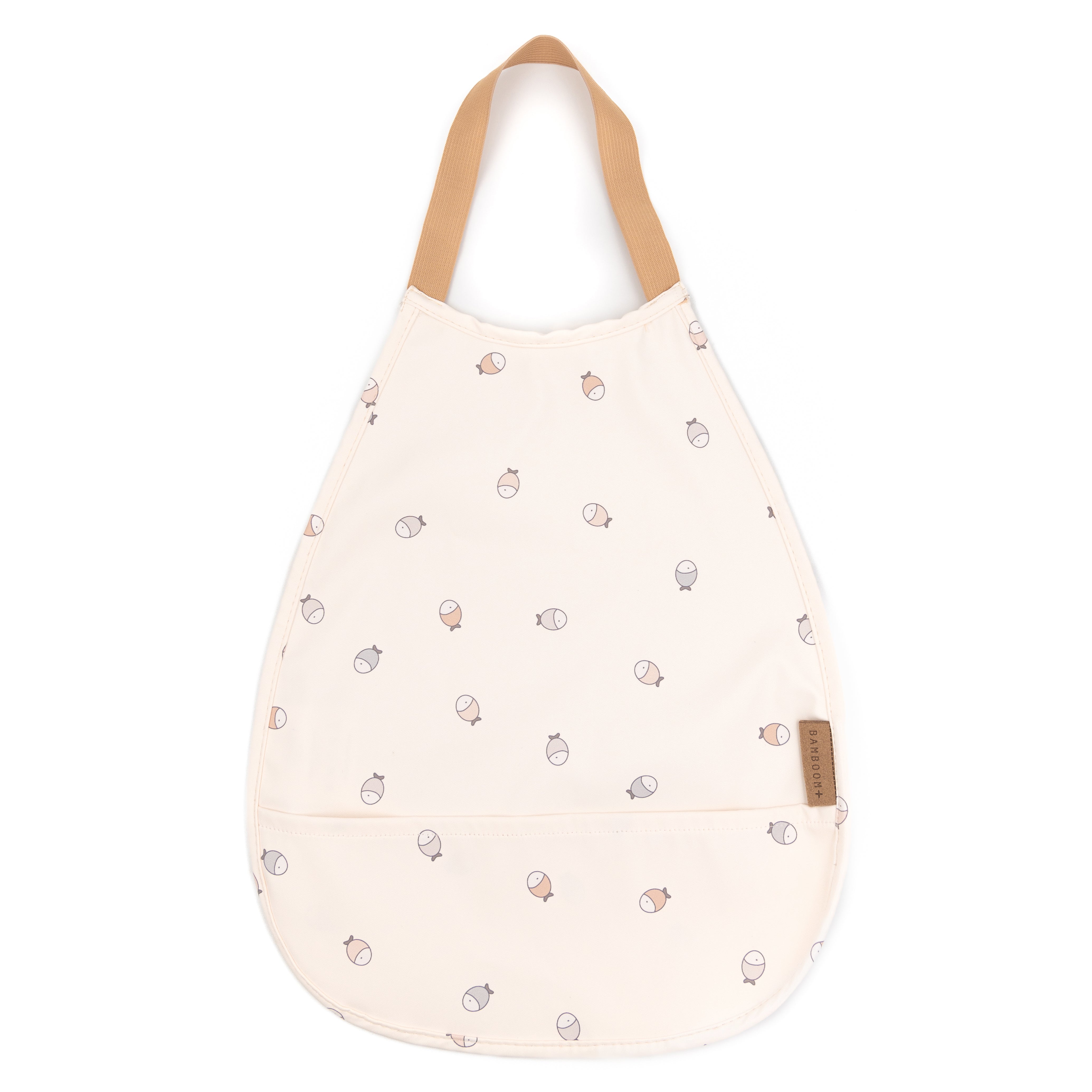 La chiusura regolabile dietro al collo assicura una vestibilità comoda e si adatta alla crescita del bambino. Il design con delicata fantasia a piccoli pesciolini dona un tocco allegro e divertente, trasformando il momento del pasto in un’esperienza piacevole e funzionale.