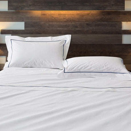 Completo Lenzuola in Percalle di Cotone con Greca Ricamata - Malta