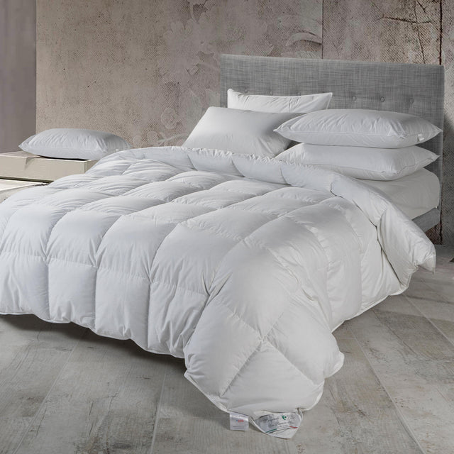 Il piumino d'oca argentato è rinomato per essere eccezionalmente caldo, soffice, leggero e avvolgente. Questa pregiata imbottitura naturale proviene da oche selezionate che sviluppano un piumaggio particolarmente isolante, caratterizzato dalla colorazione argentea che ne determina l'elevata qualità. Con un potere coibentante superiore, il piumino argentato garantisce un perfetto equilibrio termico durante il riposo.