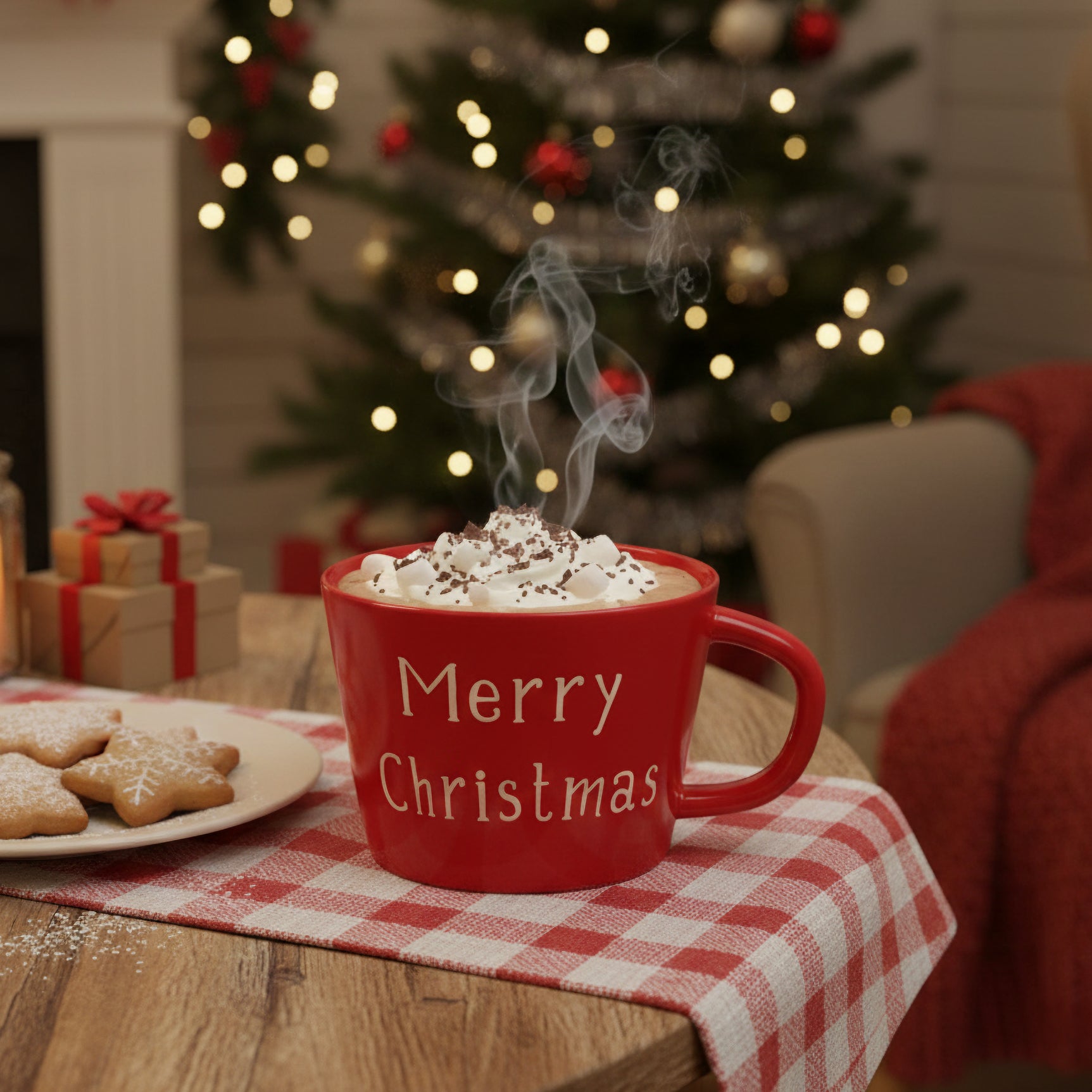 Merry Christmas è caratterizzato dai tipici colori natalizi: il rosso del grès e l'oro della serigrafia si intonano alle atmosfere gioiose delle feste, aggiungendo un tocco prezioso ed elegante. Il design semplice si accorda con un'estetica minimal e confortevole, senza rinunciare all'allegria e al calore del Natale. Grazie alla sua capienza, è perfetto per gustarsi una cioccolata calda nelle sere invernali, uno zabaione in compagnia o un cappuccino.