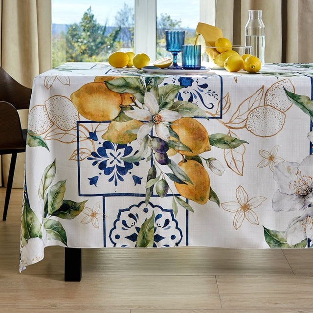 La Tovaglia AntiMacchia Maiori è caratterizzata da una fantasia estiva e mediterranea, con fiori e agrumi. La tovaglia antimacchia è in tessuto Korin, cioè idrorepellente e morbida al tatto.