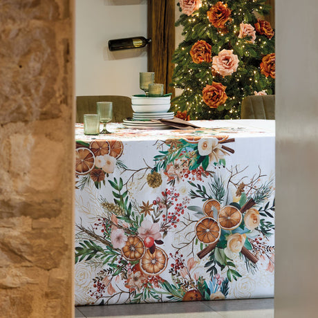 Tovaglia Antimacchia in Fantasia Natalizia - Arancia e Cannella