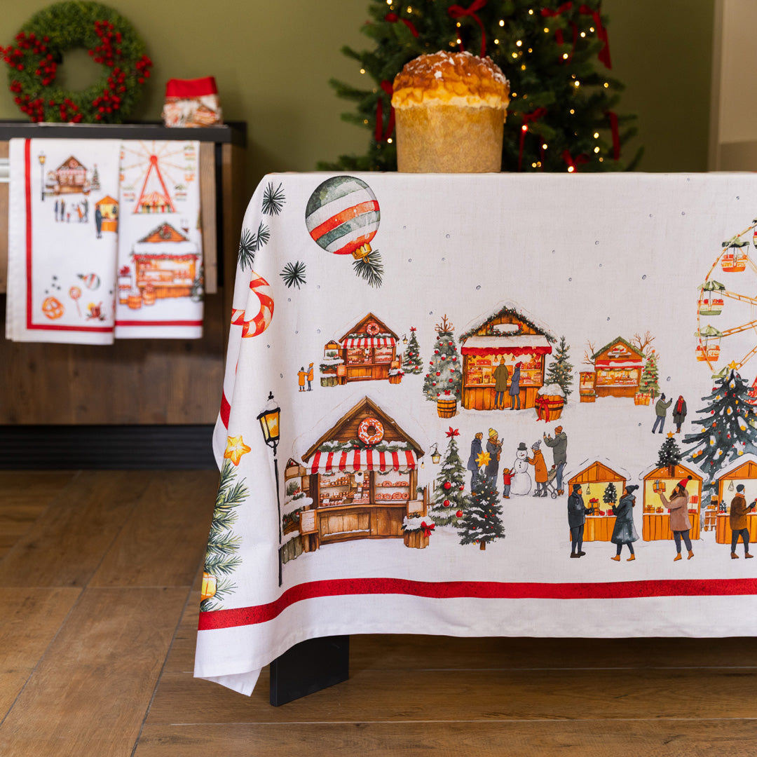 Tovaglia in Puro Cotone Fantasia Natalizia - Christmas Village