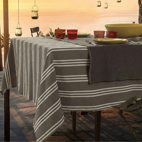 Tovaglia in puro Lino Stonewashed con balza ricamata - Cerchi